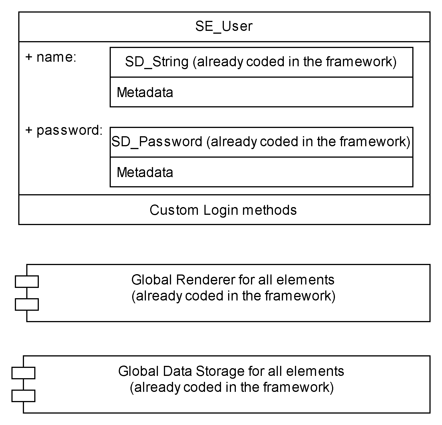 - And the respective classes SD_AutoIncrementId, SD_ElementContainerDropBox, SD_ElementContainer, AD_File, SD_Text; imply the data type and that all data except the ID should be displayed in views, creation forms, and update forms. Each class also indicates how they should be displayed in each situation.